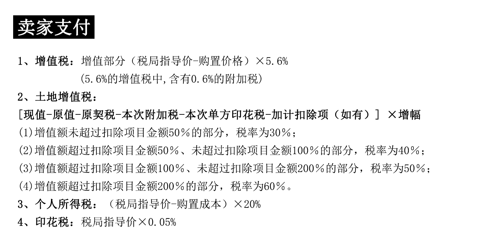 如一个商铺130万买入,卖出价格为230万,本来中间有100万的溢价,但按各种税的标准算下来:卖方需交税约38万元,买方需交税约9万元。
