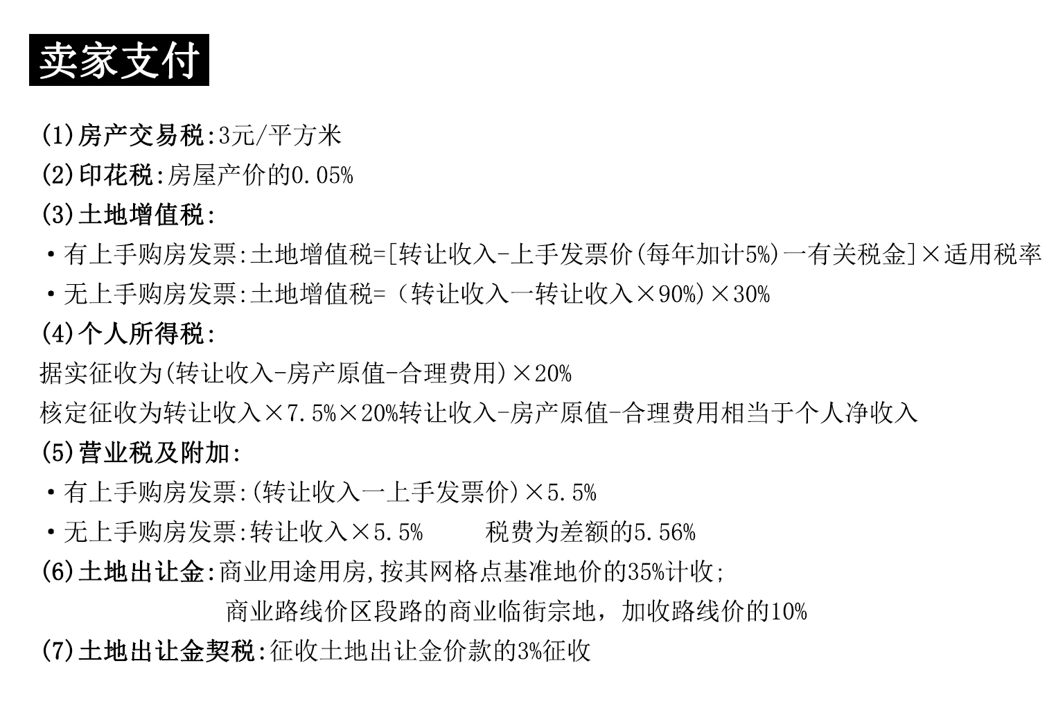 这之中的部分税费,可由买卖双方自由协商,如工本费、印花税可以由其中一人来全部承担,也有全部税费都由买家承担的。公寓的商业局限性导致它流动性会比住宅差一些,再加上税费吓人,难免会有不好出手的时候。