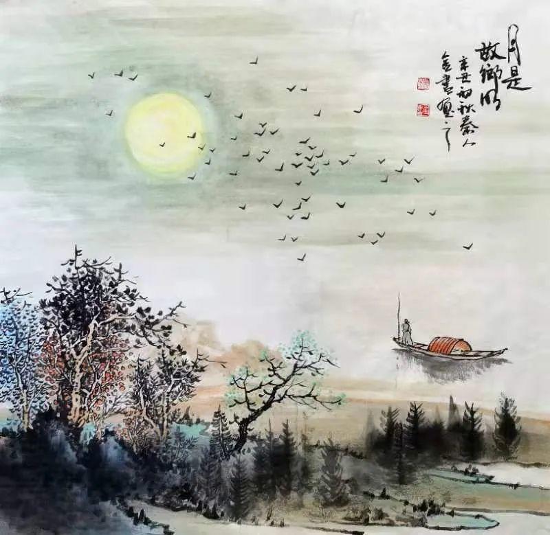 ▲杨金书作品《月是故乡明》