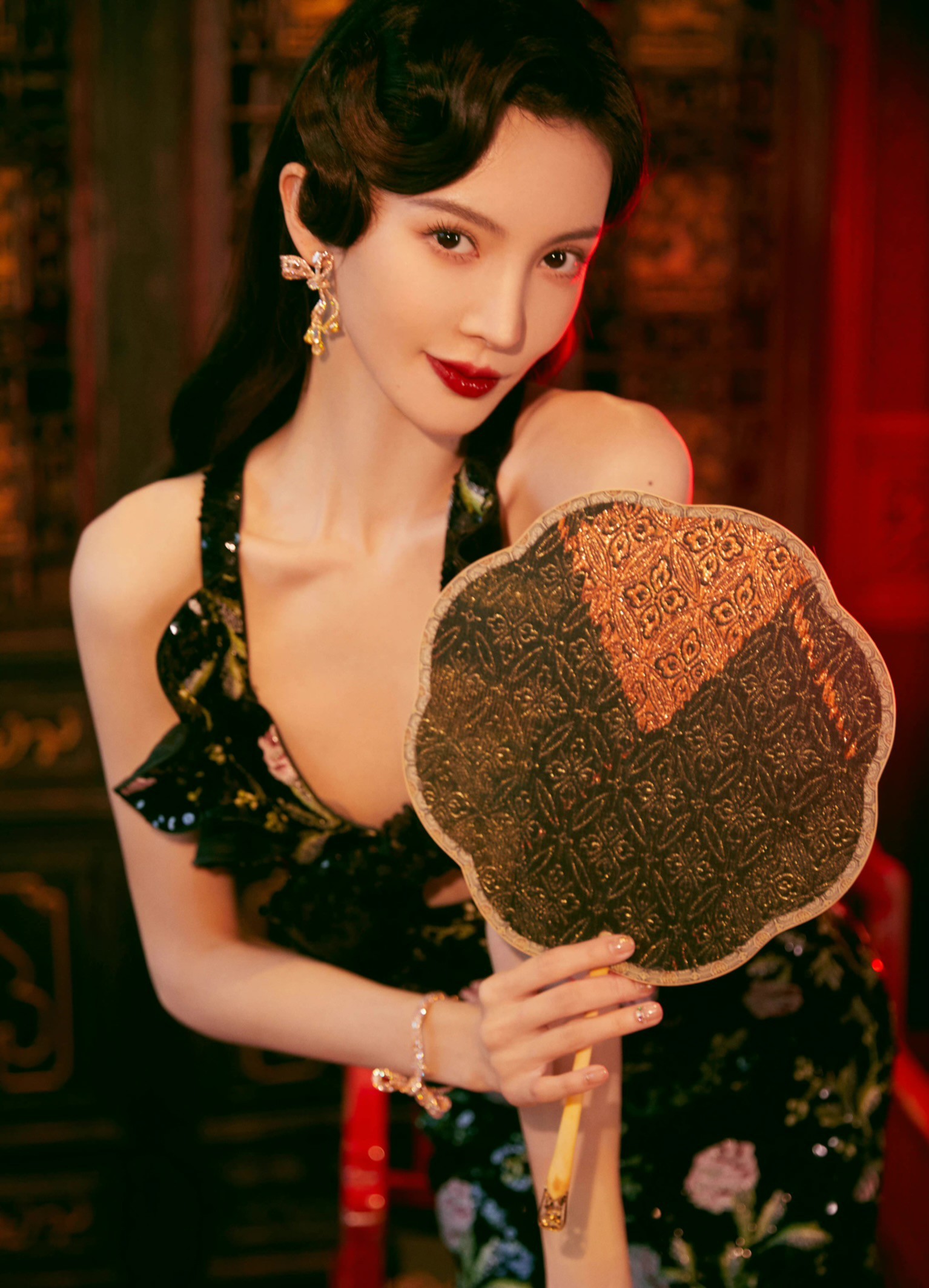 由于想把惊喜留到红毯上展露,热巴只披了一条黑色披肩把自己的旗袍造型遮得严严实实,结果一身临时造型,以近似 “貂类”的上披风+贵妇头饰,搭配明艳红唇,照样完美再现了温柔复古民国范儿。