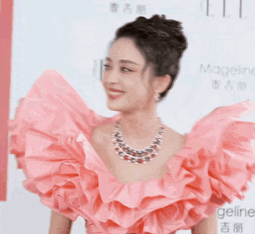 但就想问这身粉色花苞裙是啥意思,我明白这造型意图是“人比花娇”,走红毯一定很美,但在直播间就有些过分华丽了。