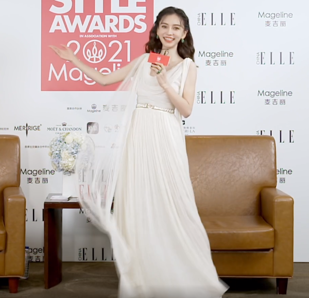 就说最近没有缺席任何一场红毯活动的Angelababy,当天穿着一身白色仙裙来了,还在红毯美美地拎着裙摆转了一个圈,让人梦回芭莎红毯合照现场。