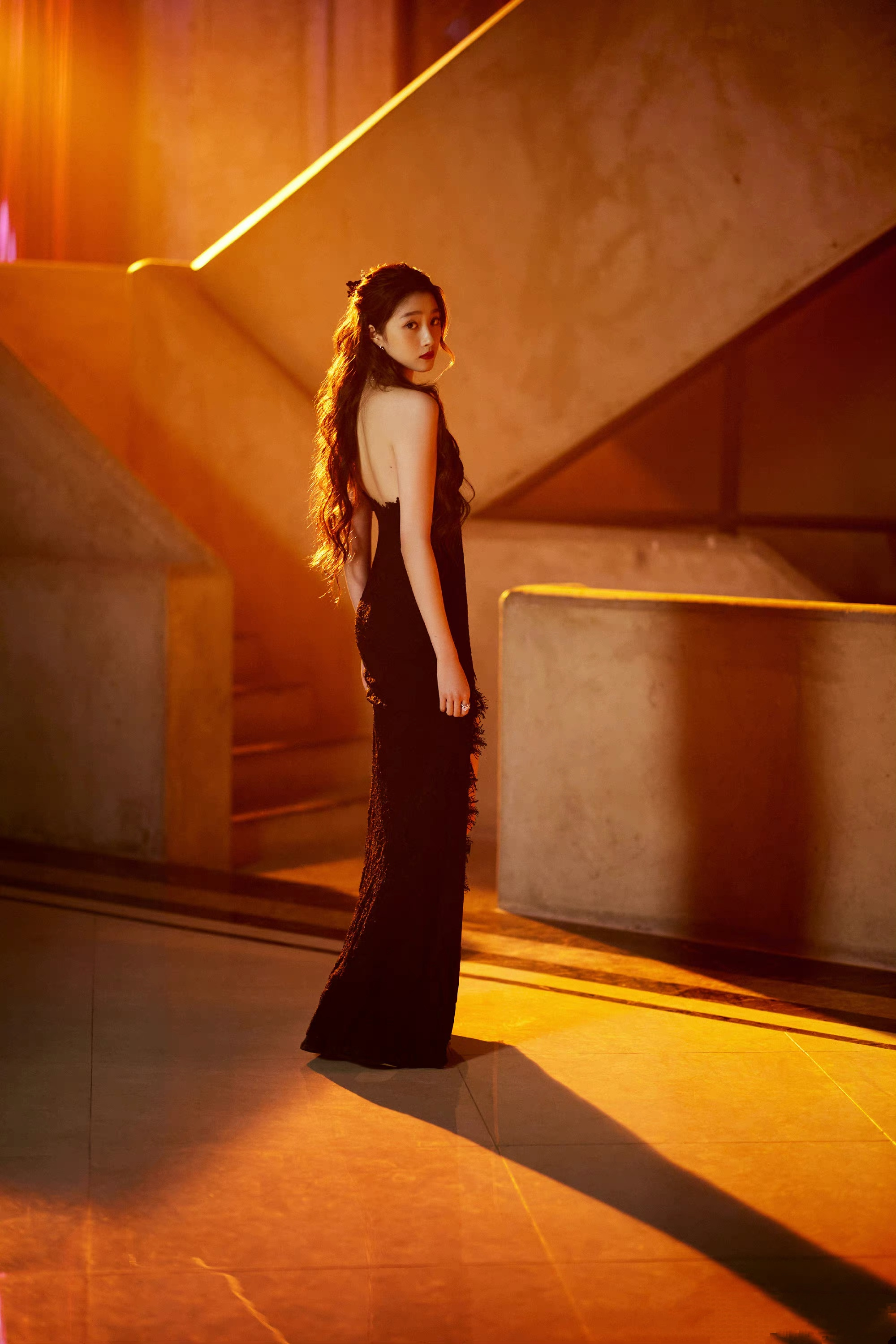 极其考验身材的黑红长裙被穿出优雅大气,衬托出纤细手臂,优美锁骨,谁看了不说一句简爱好美。