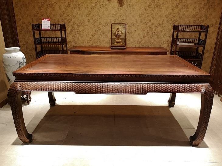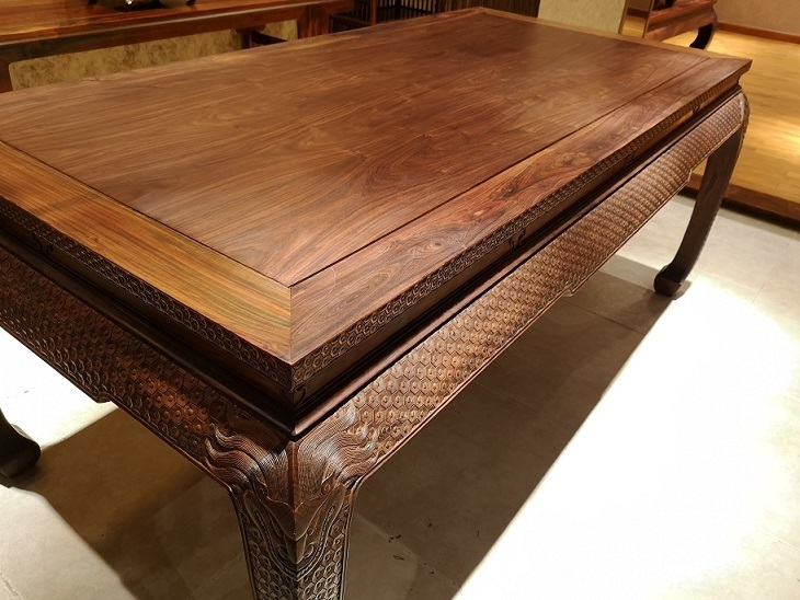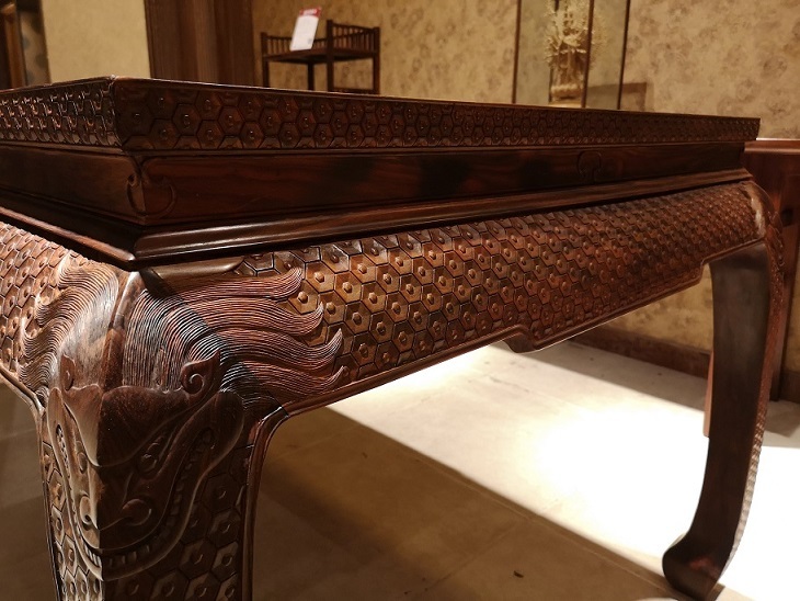 整个板面都是金丝楠木结的树瘤,即满葡萄架的瘿子。可谓是金丝楠纹理中的极品。