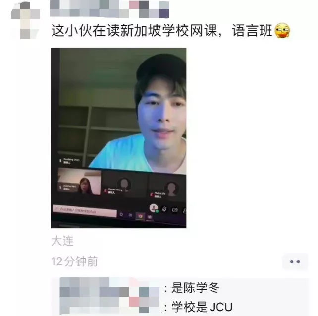和陈学冬一起上网课的同学说,他是去了新加坡的詹姆斯·库克大学(JCU)。