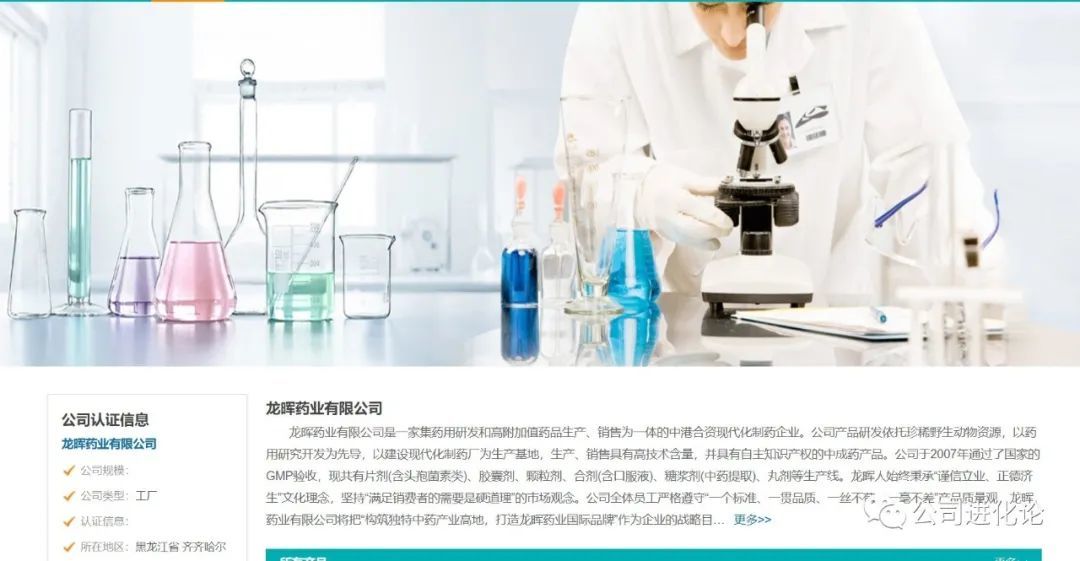 官网显示,龙晖药业产品研发依托珍稀野生动物资源,以药用研究开发为先导,以建设现代化制药厂为生产基地,生产、销售具有高技术含量,并具有自主知识产权的中成药产品。