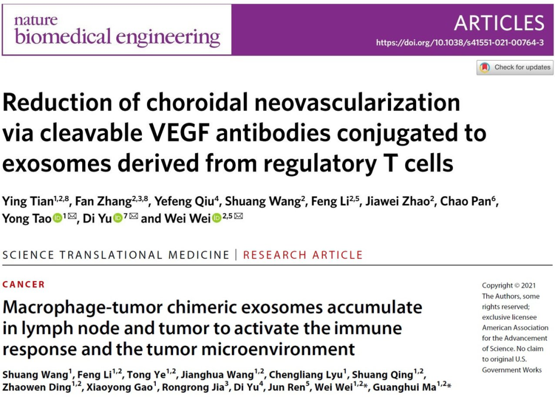 今年以来,马光辉、魏炜课题组的多篇研究成果相继发表在 Nature Nanotechnology、Science Translational Medicine、Nature Biomedical Engineering 等期刊上 [2 ] 。