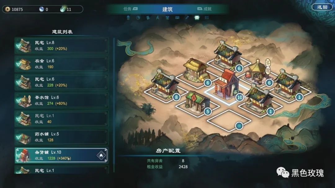 本作还加入了开发商甲山林的“老本行”房产系统。在菜单中,玩家就可以便携地打开九宫格式的建造页面,在建好房子之后通过收租来定时赚钱。不同类型的房产,如何排布才能实现收益最大化,也值得一番研究,让本作又拥有了一些模拟经营的乐趣。