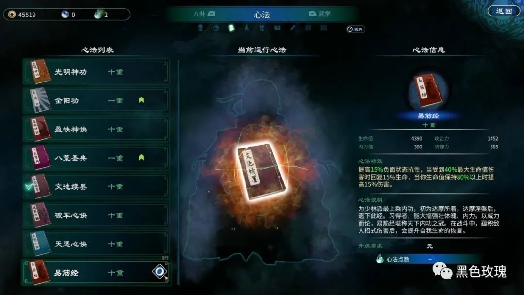 不过,与许多传统武侠游戏不同,本作的各类武学心法之间,强弱的差别十分细微。少林至宝“易筋经”,无论属性加成还是战斗效果,都与一般内功差别不大,回血效果有时还不如异端邪教的“光明神功”;剧情中练成后即可天下无敌的“藏墨剑法”,实际战斗中却非常不好用,经常会打不到人。