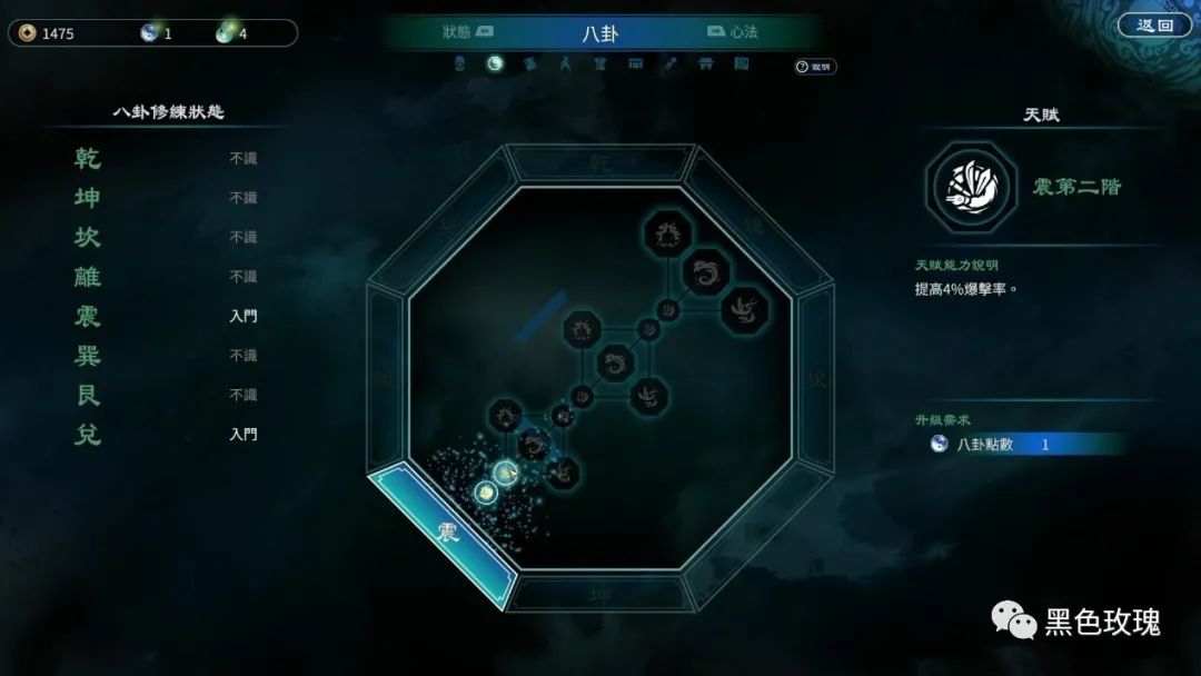 而“八卦”的概念则被继续保留了下来,作为人物主要的成长系统。比起前作“雨露均沾”式的八卦加点,本作由于点数有限,则更加要求玩家专精于一两门卦象。