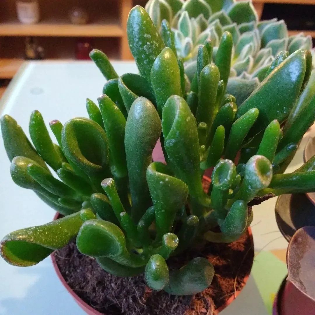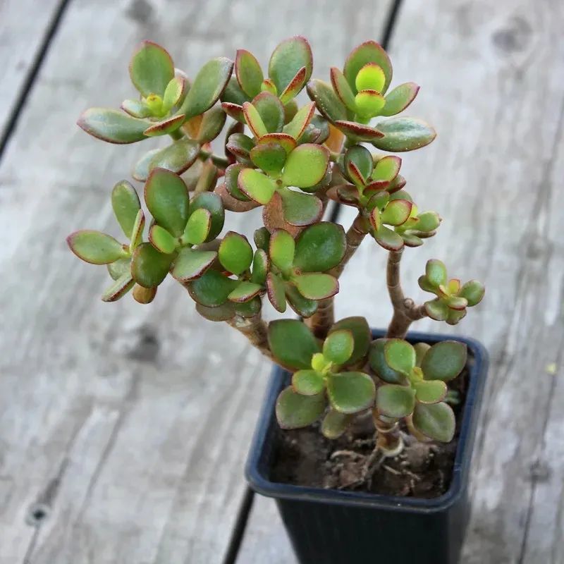 玉树(Crassula arborescens)和吸财树(Crassula ovata ‘Gollum’)是同类型的植物,都是景天科青锁龙属的亚灌木植物,它们的枝条会不断长高,如果长了5~10年以上,枝条底部还会不断木质化,非常适合养成盆景。