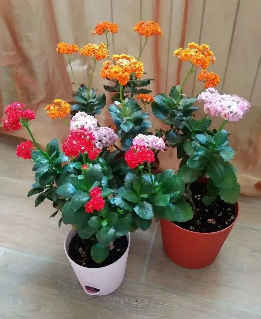 长寿花的花朵有单瓣和重瓣等不同品种(宫灯长寿的花是铃铛状的),花色极其丰富,最关键的是花期特别长,基本都会有1~2个月以上的观赏期。