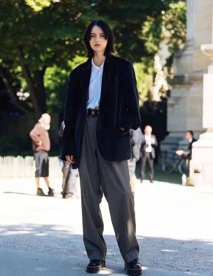 欧美博主在中性穿搭上则更实用一些,中性风满满的老爹鞋、西装裤都是让平平无奇的基础款提升好品味的利器,大女生的帅气洒脱彰显得淋漓尽致!