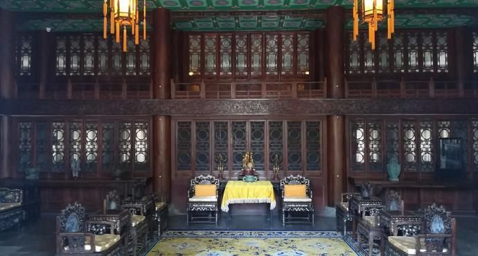 据说当年和珅特意派太监去查看故宫的建筑,然后命令工匠完全仿造故宫宁寿宫格局施工,设“周制”仙楼,屋内隔断用金丝楠木打造,外看为一层,但实为两层,精巧异常。