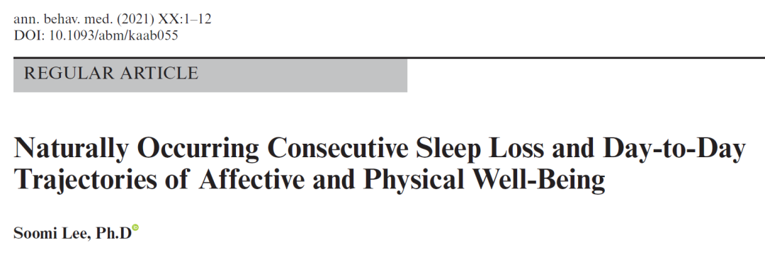2021年7月,美国南佛罗里达大学的助理教授 Soomi Lee 在 Annals of Behavioral Medicine 期刊发表了题为:Naturally Occurring Consecutive Sleep Loss and Day-to-Day Trajectories of Affective and Physical Well-Being 的论文。