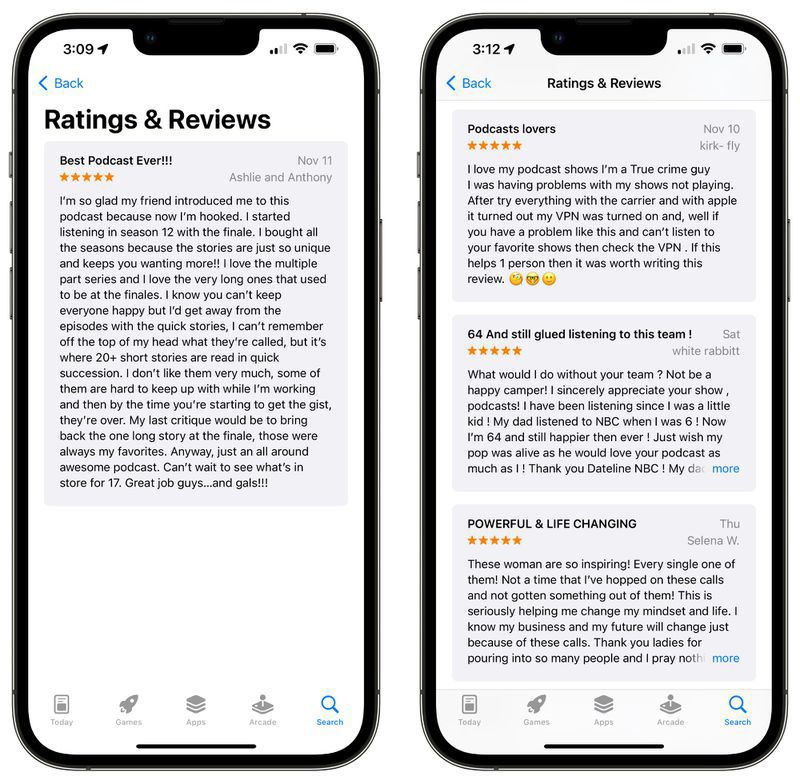 IT之家获悉,iOS 15.1 版本发布后,苹果 Podcasts 应用开始主动邀请用户对其打分,这段时间每天都会收到数千条评论,其中的大部分内容都是正面的。此前评分为 1.8 分的原因是,iOS 14.5 版本更新后,Podcasts 出现了新的 Bug,导致其下载大量重复内容,同步出现错误。
