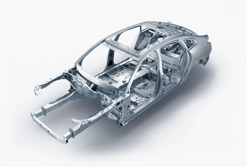 该车采用 9H 笼式车身结构,大面积应用高强度钢以及超高强度热成型钢板。