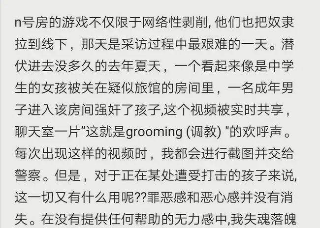 也曾有记者潜伏进“N号房”举报,但看见那些受害的女孩子依旧感到无力,他难过地问:“对于正在遭受打击的孩子们来说,这又有什么用呢?”