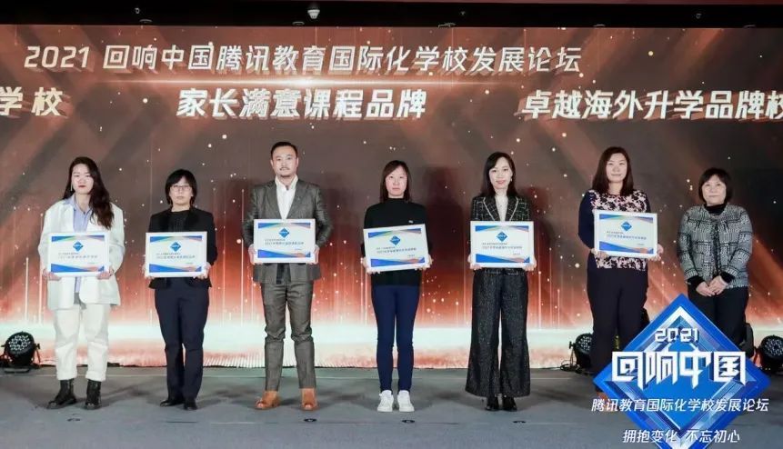 2021年度“中国人气名校长”、2021年度“国际学校领军人物”、2021年度“中西方教育融合卓越贡献人物”、2021年度“中国教育家巾帼人物”4项个人荣誉,2021年度“思政典范学校 ”、2021年度“家长满意课程品牌”、2021年度“卓越海外升学品牌校”、2021年度“国际化人才培养杰出品牌”、2021年度“家长信赖国际学校品牌”、2021年度“年度口碑影响力国际学校”、2021年度“国际教育知名服务品牌”7项学校荣誉揭晓。