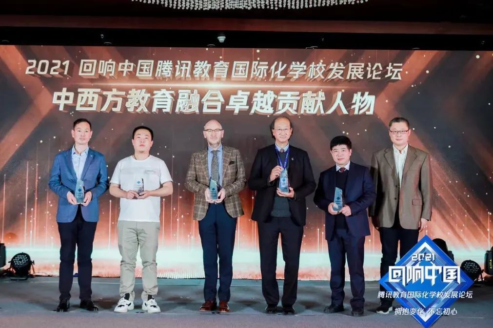 11月21日,2021“回响中国”腾讯教育国际化学校发展论坛在北京富力万丽酒店召开,国际教育专家,教育研究机构代表,国际学校创始人、校长等汇聚一堂,以“拥抱变化 不忘初心”为主题,共同探讨国际化学校内外部环境变化下的应对与变革,分享办学的最新理念和实践经验,规划回归教育初心的发展蓝图。在论坛活动中,11项年度荣誉榜单同期揭晓,为提升国际化教育质量做出突出贡献的学校和个人代表实至名归。