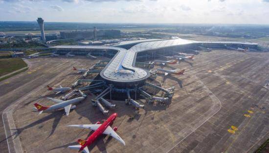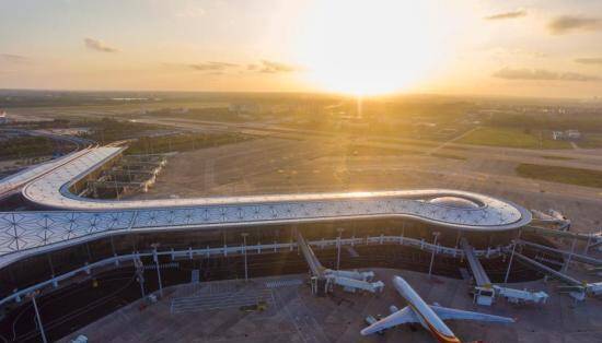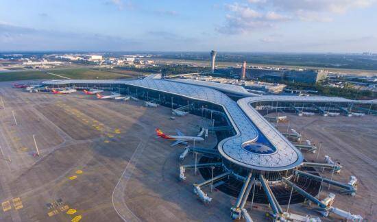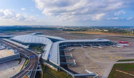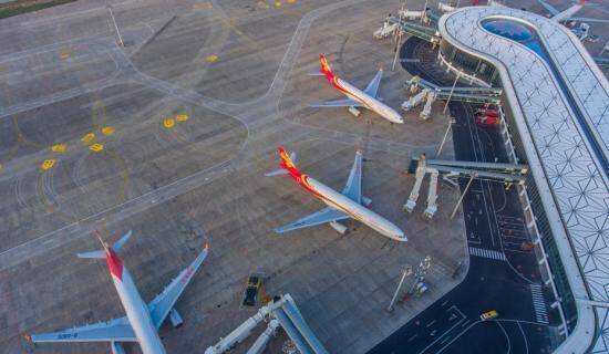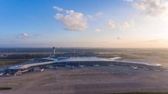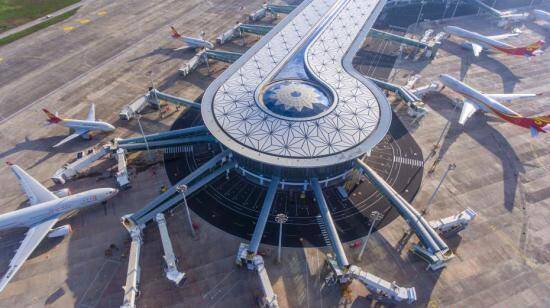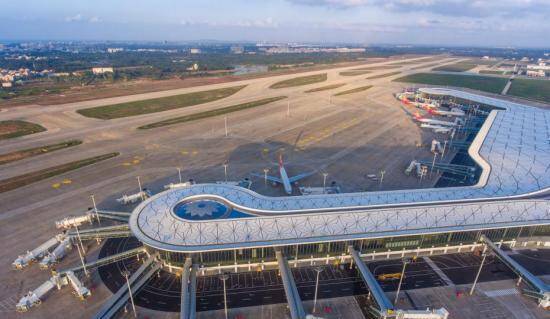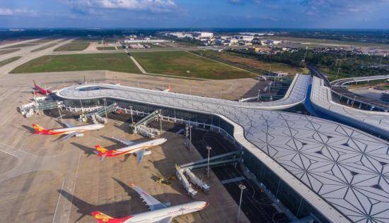 航拍即将投入运营的海口美兰国际机场二期扩建项目。(无人机照片)