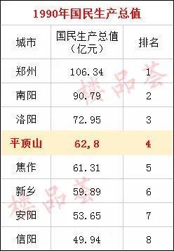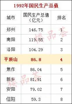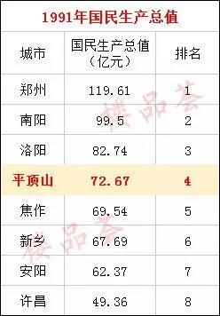 上世纪九十年代初及以前,平顶山的GDP多年排在全省第四。