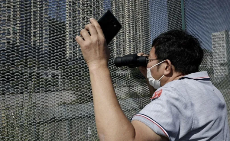 根據記者現場的觀察,當日有十多人在鐵絲網附近眺望對岸,從望遠鏡中尋找熟悉的家人身影。雖然只有一河之隔,甚至電話信號都已經跳到内地網絡,但依然是咫尺天涯。如果不慎迷路,駐守禁區的警察更會主動告知地址,可見有此需求的人亦不少。