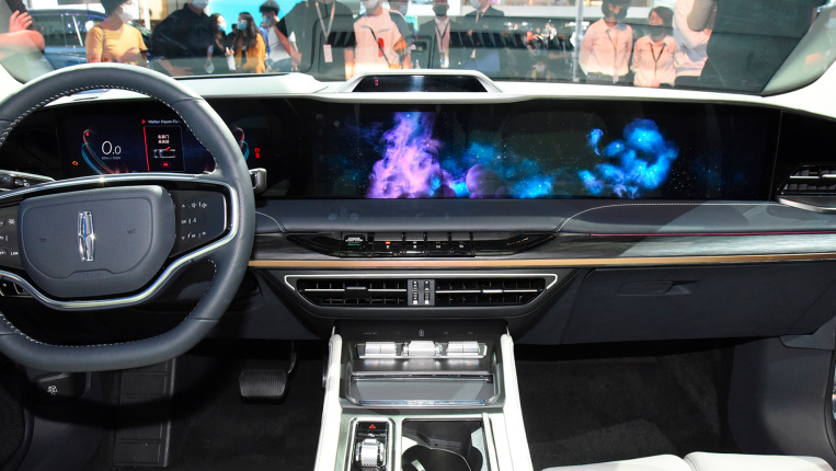 侧面则使用了一根抛物线形腰线贯穿,并配有隐藏式门把手,与多辐式熏黑轮圈相搭配凸显了运动感。新车的车尾设计同样是年轻气息浓郁,熏黑、贯穿式尾灯搭配底部复杂的包围显得十分时尚。最值得一提的是新车的内饰,与普通林肯车型差别比较大,使用了一块40.2英寸的三联屏,将搭载最新的人机交互系统Constellation,多功能方向盘为双辐双色式,并且大部分是触摸式感应按键。