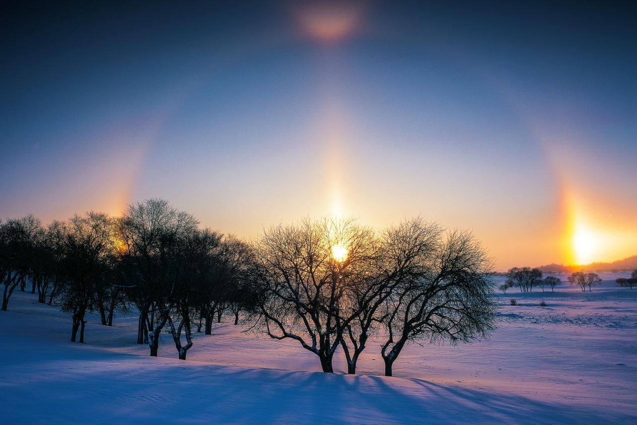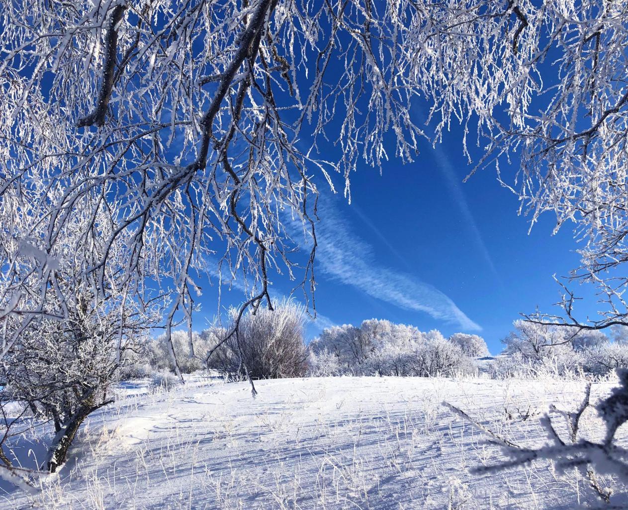 白雪层层覆盖了远处层峦叠嶂的山峰