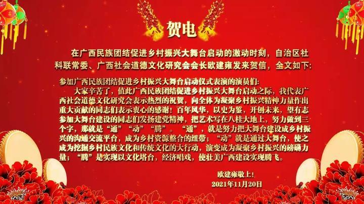 民族团结促振兴、创新奋进新时代。为了积极响应党中央全面推进乡村振兴的号召,宣传乡村振兴政策和乡村振兴法,传播广西民族特色文化和非物质文化遗产,推动乡村经济更上一层楼。2021年11月20日,党旗引领 文化振兴 “广西乡村振兴民族团结大舞台”启动庆典活动在广西南宁隆重举行。