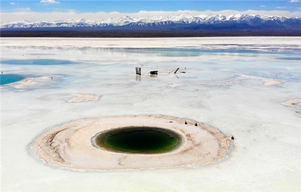 茶卡盐湖是柴达木盆地四大盐湖中最小的一个,也是开发最早的一个。茶卡盐也叫大青盐,所以说,茶卡盐湖是大青盐的故乡。