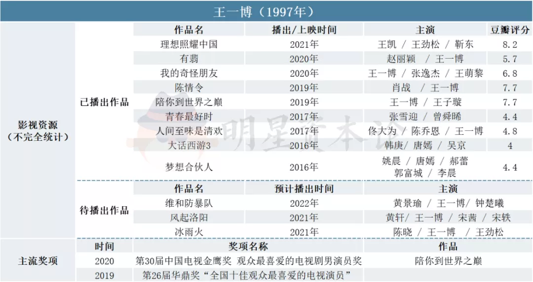 如97年的王一博,在《陈情令》爆火后成为顶流。后来一边拍摄了《有翡》《风起洛阳》等剧作巩固流量,同时试水刑侦剧《冰雨火》和公安题材电影《维和防暴队》尝试不同风格。不过,目前已经播出的《有翡》《我的奇怪朋友》都反响平平,王一博还需要打磨演技,用更多好剧证明自己。