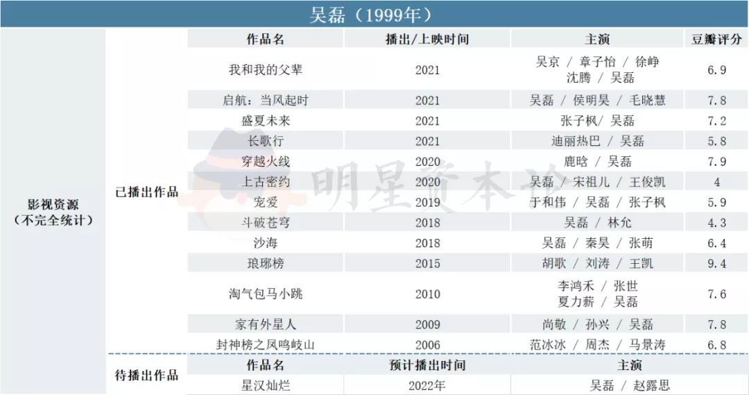 第一梯队的头部小生,主要有刘昊然、吴磊等。他们有国民度也有知名作品,现在主要专攻正剧和大制作电影,以求获得转型突破,能够成为“第二个吴京”。