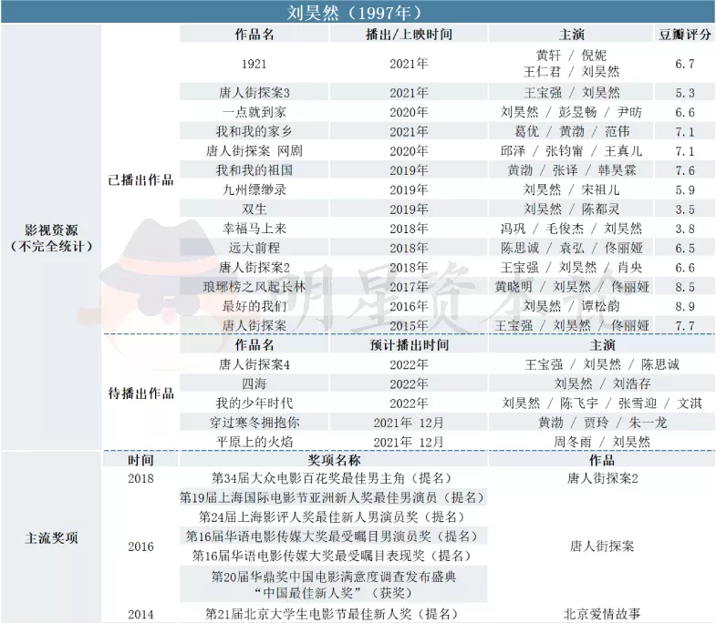 作为95后小生的领头羊,刘昊然目前已经跻身电影圈。他靠《唐探》走红,获得多个主流奖项提名,后又凭校园剧《最好的我们》火遍全网。近几年,刘昊然在国庆档《我和我的祖国》、《我和我的家乡》电影等中崭露头角,其个人票房高达173多亿,仅次于吴京和沈腾。为了今后能独自扛剧,刘昊然还在做一些突破与尝试。
