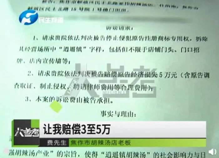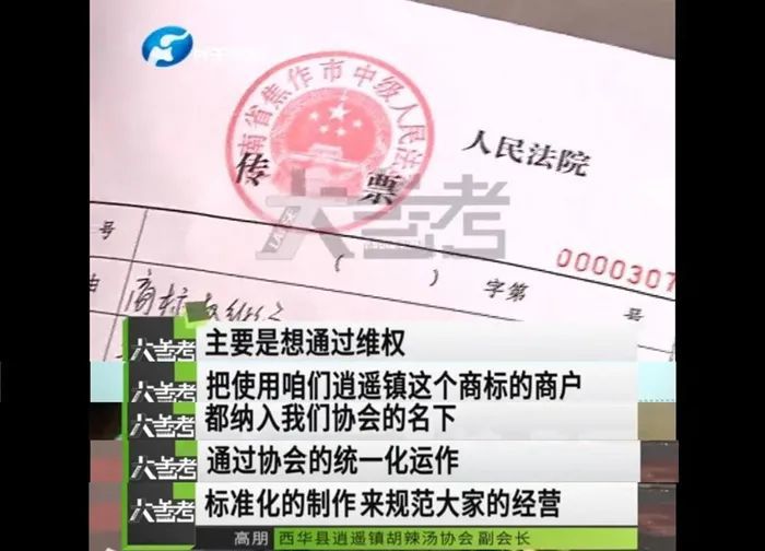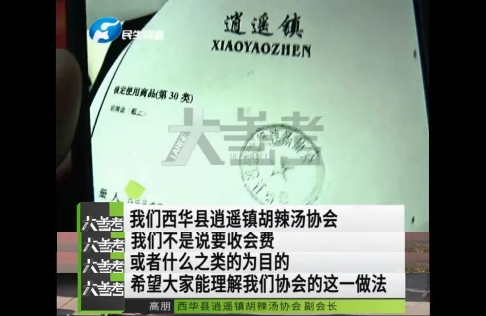 最近,河南知名小吃“逍遥镇胡辣汤”被推上了风口浪尖。因为门牌上写了“逍遥镇”三个字,河南省焦作市的多家逍遥镇胡辣汤商户突然收到了法院传票,而起诉他们的,是河南省周口市西华县的逍遥镇胡辣汤协会。