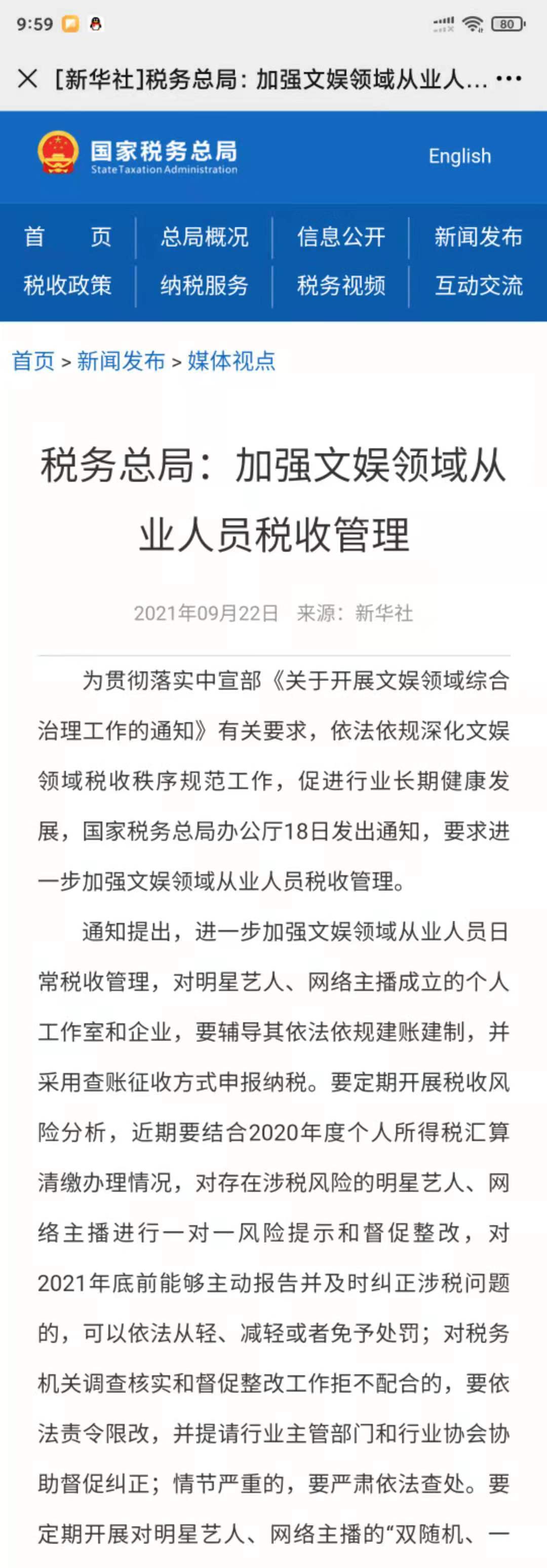 对于这些避税明星,国家的政策已经足够宽大。今年9月,国家税务总局就发出通知,要加强文娱领域从业人员税收管理。通知指出,对存在涉税风险的明星艺人、网络主播,国家首先会进行一对一风险提示和督促整改,只要你在2021年底前能够主动报告并及时纠正涉税问题,可以依法从轻、减轻或者免予处罚。