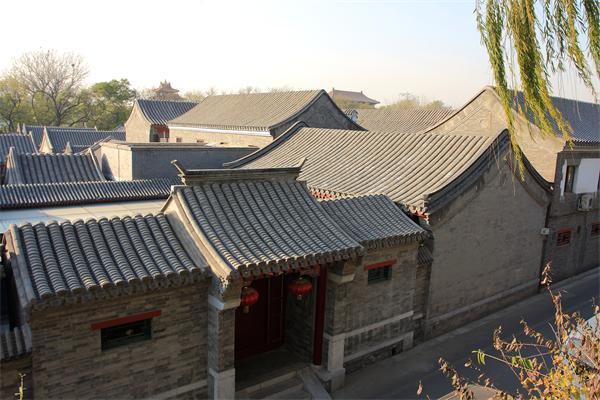 其中四合院庭院采用中庭式布局,主屋皆朝北,辅助建筑沿院落向其余三边布置,以取得最大空间尺度,保持院落空间的完整形态。四合院是一种古老的庭院形式,也是中国建筑的基本语汇,受中庸思想的影响,在四合院建筑组群中,封闭的院落单元具有主从关系和一定的规律性,可以层层叠叠进行多重组合变化。多重院落之间多重围合、闭合,形成富有变化的建筑组群轮廓。这种四合院布局影响至南方的广大地区,民居格式被演变成为带有庭院或天井的两层居所,四面瓦顶内朝中间院落,谓之“四水归堂”。