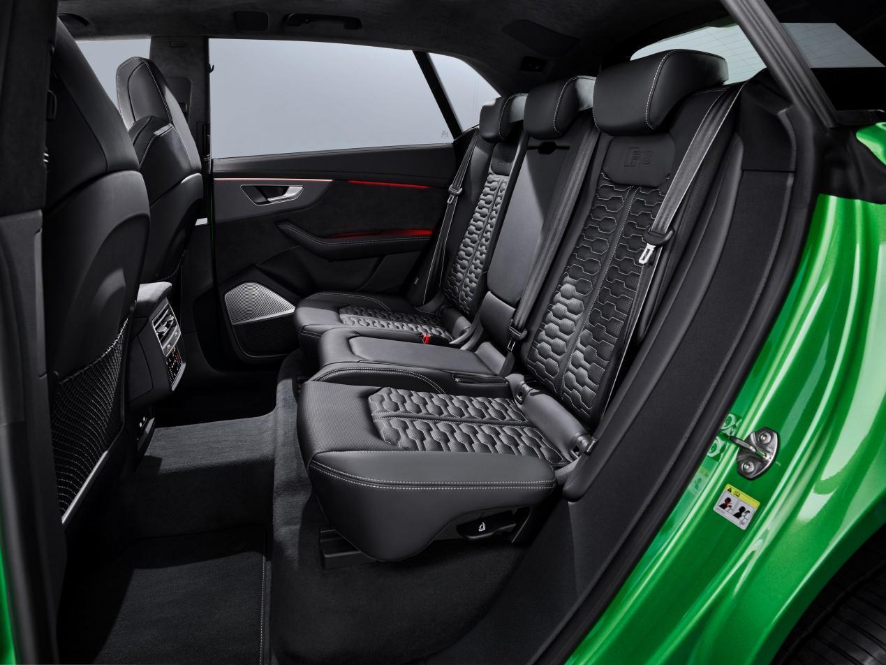 在看到实车后,小编感受到了全新奥迪RS Q8的外观设计的魅力,被深深的吸引了。新型汽车的尾灯组与家族其它车型相比较窄一些,而且采用了当前非常流行的贯穿式尾灯。这款尾灯组的造型与当前的奥迪经典车型有着异曲同工之处。还有一点不同之处是,全新奥迪RS Q8在后保险杠下增加了一块类似于跑车的扩散板。另外,全新奥迪RS Q8与家族其它车型一样,采用双边双出的矩形排气管,看起来更有运动感。