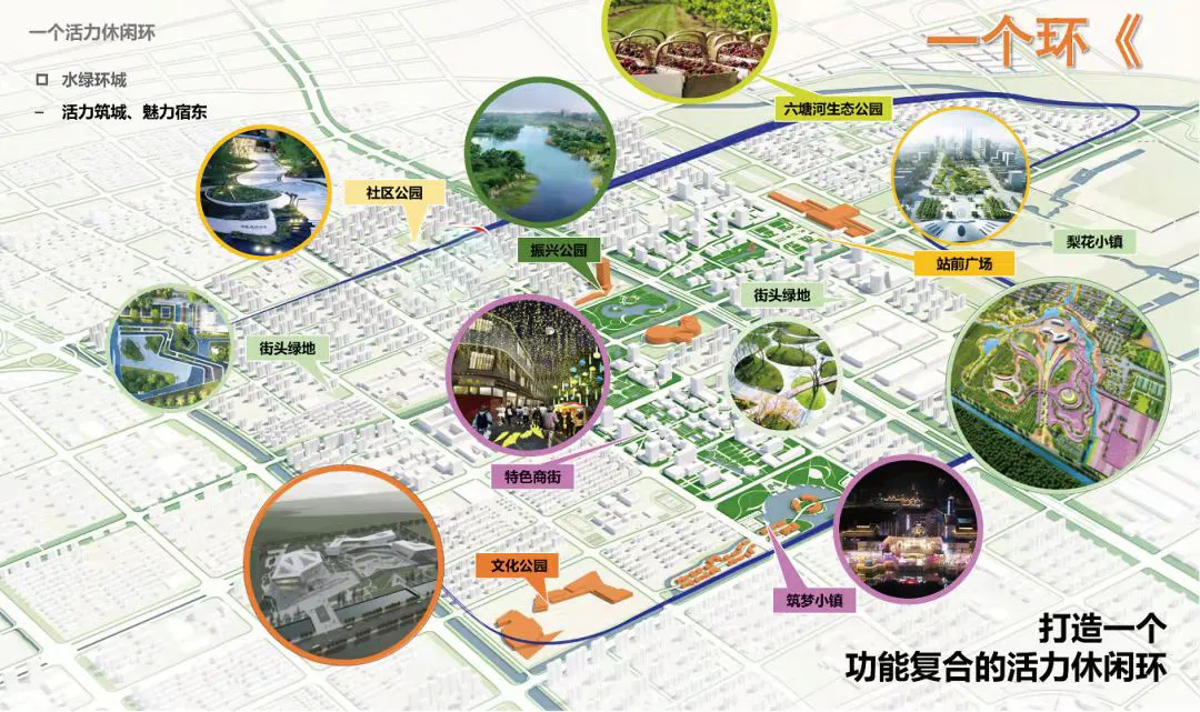 依托高铁东站,打造“创意办公+会务旅游”中心,带动高铁新城快速发展,加强新城行政中心与高铁东站的衔接与互动,打造创意生活街区。