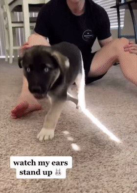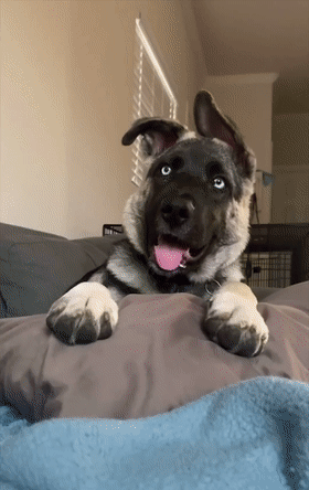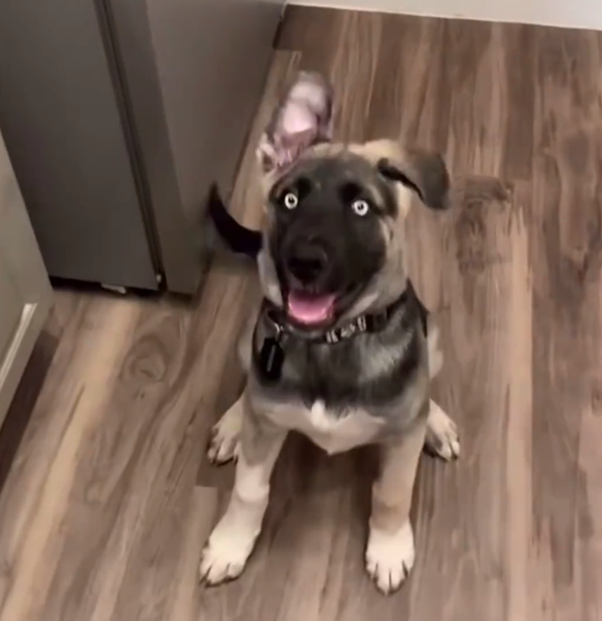 德牧和二哈的混血宝宝,小时候看起来也是可可爱爱,呆萌中透着点小机灵。