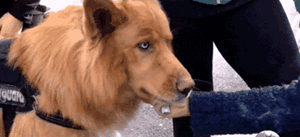 据说,这是一只金毛和哈士奇的混血宝宝...