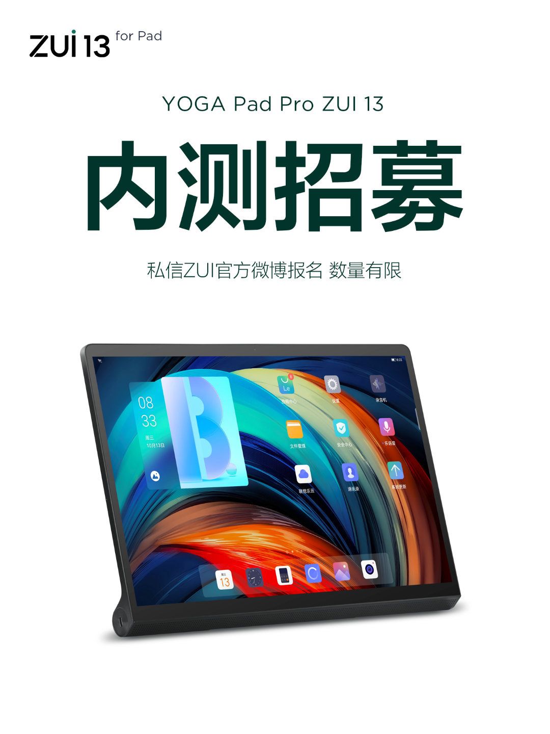 IT之家 11 月 23 日消息,联想方面今日宣布,YOGA Pad Pro 现开启 ZUI 13 内测招募,YOGA 小伙伴可提前体验 ZUI 13 系统。