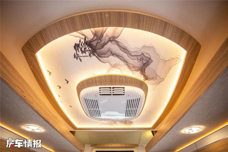 正因为是一辆对拓车型,所以车内的空间要比我们想象中的宽敞很多,同时使用了暖色系的装饰风格彰显了温馨的感觉,车厢顶部还加入了有设计感的吊顶设计,更为全车增加了精致感和豪华感。