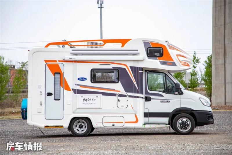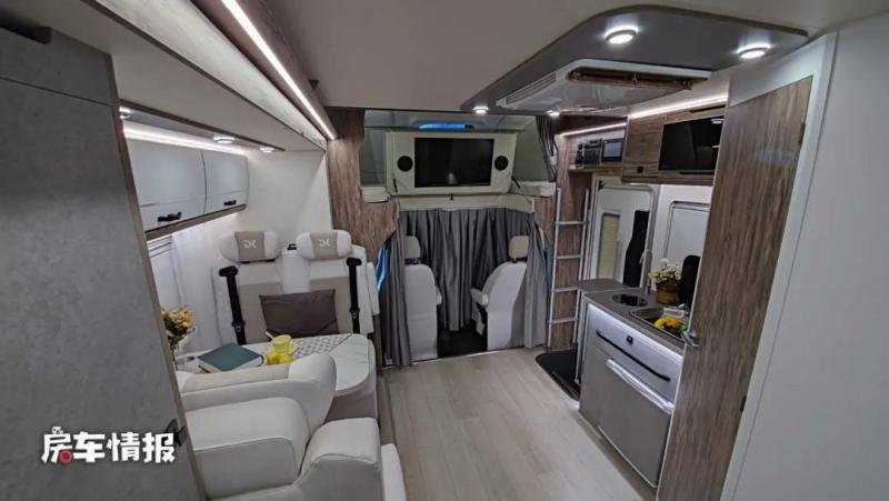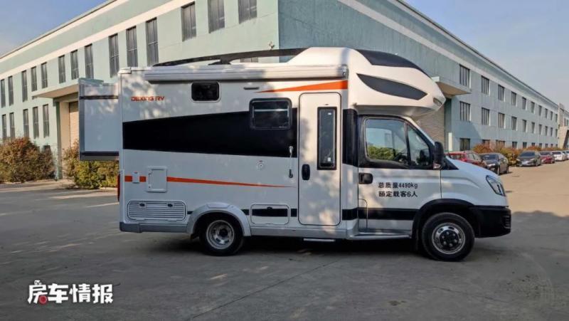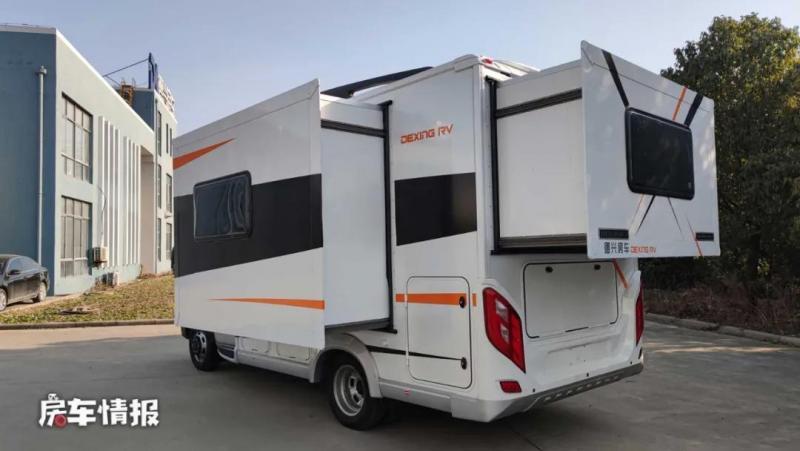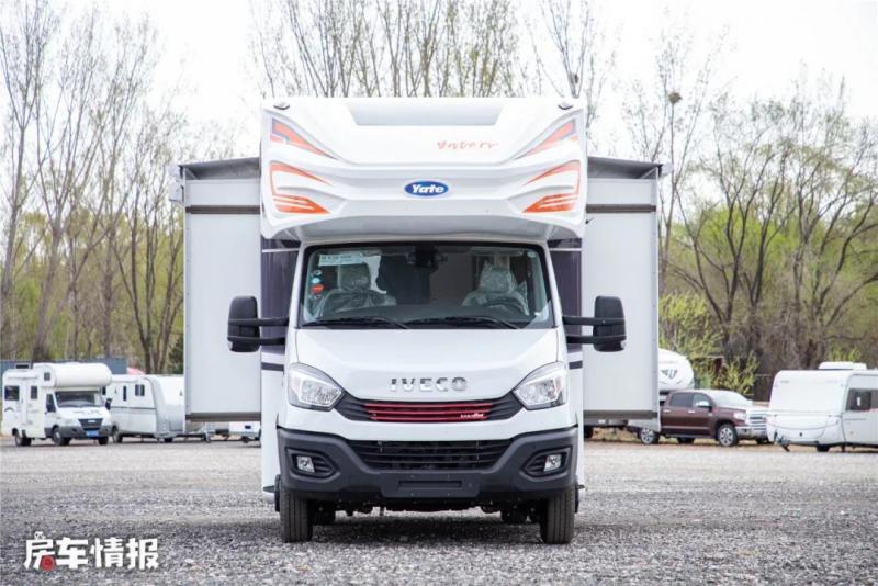 第一款是来自于德兴的一款基于依维柯欧胜底盘所打造的名为大熊座的房车,整体还是采用了主流的大额头式设计,另外因为这是一款带有双拓展的房车,所以完全可以保证车内生活区的使用空间,全车达到长宽高分别为5990*2280*3180mm,结合整车的动力,3.0T柴油发动机匹配8AT自动变速箱,最大功率125kW,最大扭矩400N·m,不仅满足国六排放标准,同时也符合蓝牌C本驾驶的规定。