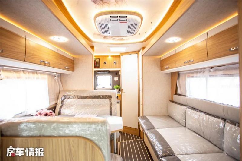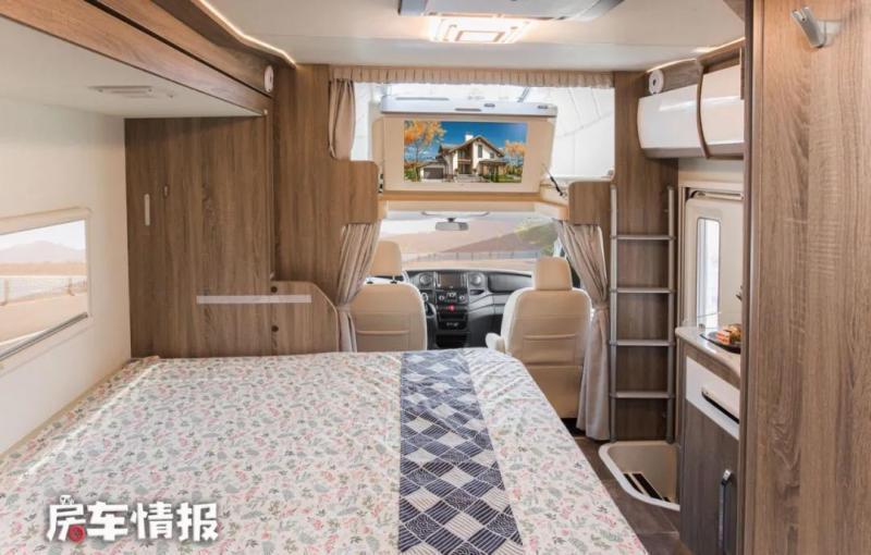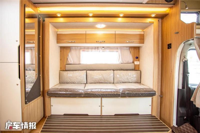 这款金冠CD520房车最大的亮点,是内部带有一张隐藏的超大尺寸专利床,那么现在这款车的价格为59.8万元。