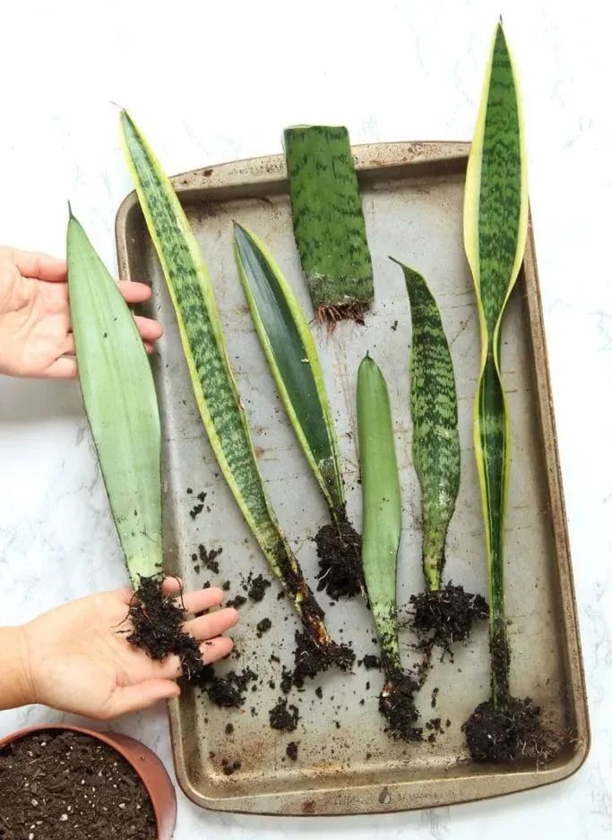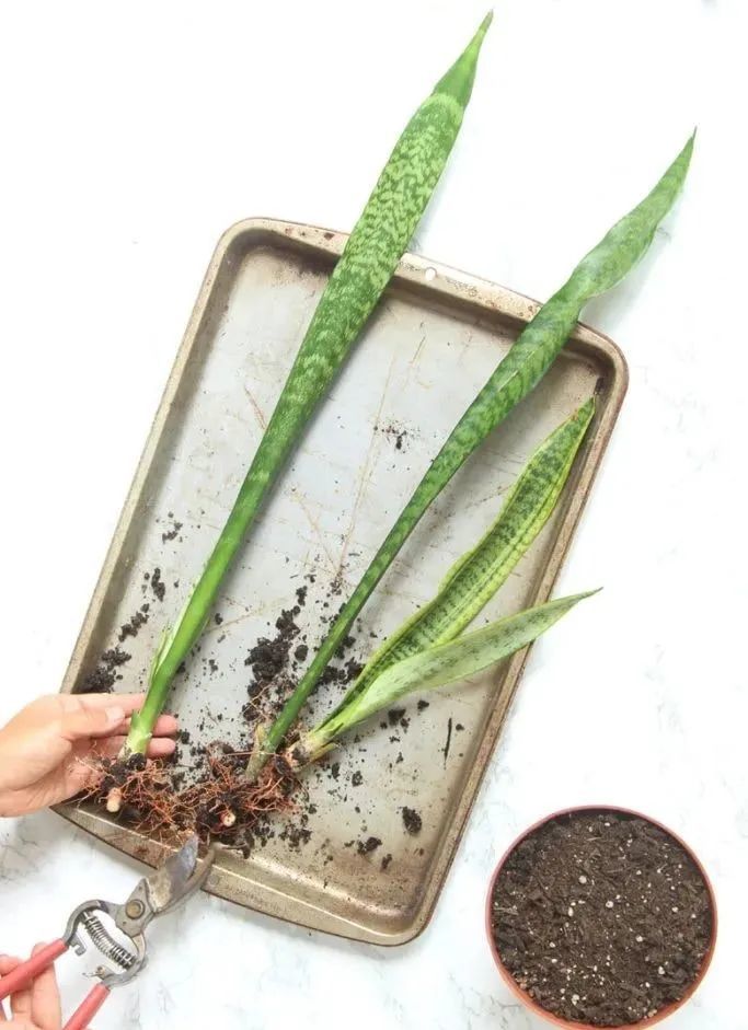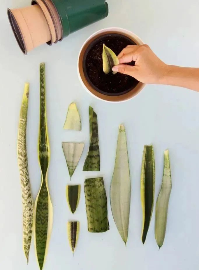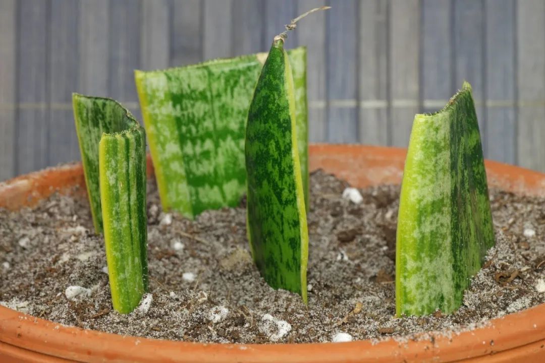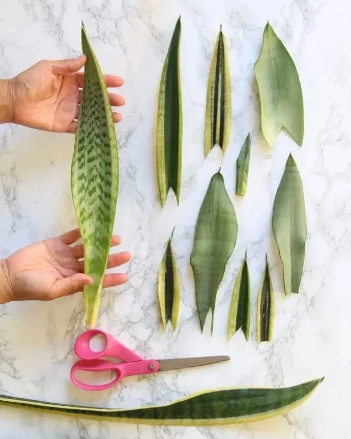 土培叶插繁殖虎皮兰的叶片也非常简单,将健壮的叶子剪下来,叶片底部直接平着剪。