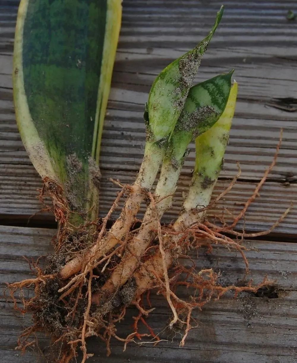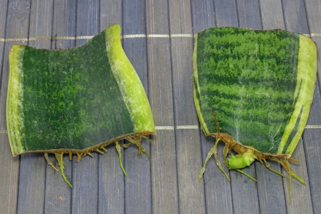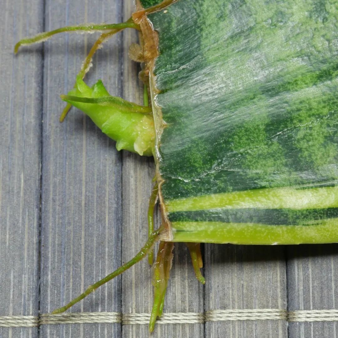 在这样的环境下,水培叶插繁殖的虎皮兰会在3~4周之后长出根系,大概2个月左右,它的根系处就可以长出较为健壮的嫩芽了。