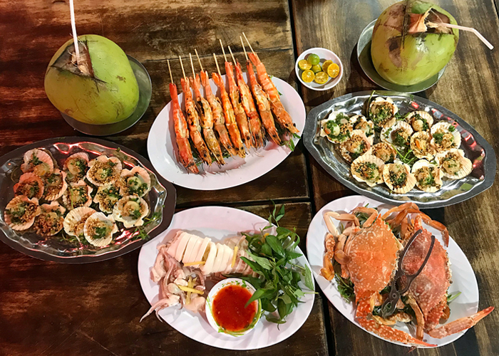 Rach Vem 渔村很多专门供应海鲜的餐馆。食材的来源是白天渔民在海中捕获的,都是新鲜的。