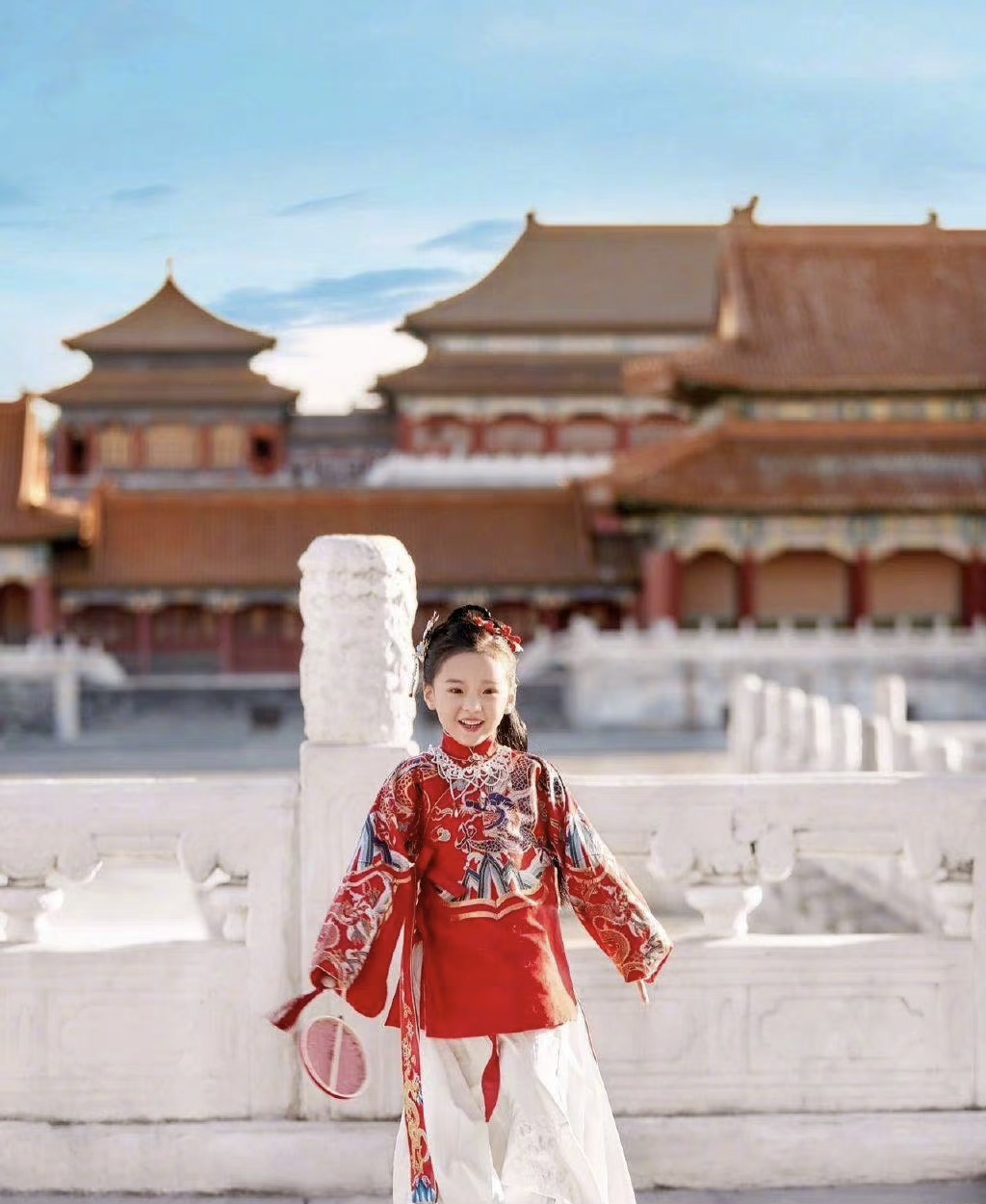 近日,董璇在社交平台曝光了一组女儿小酒窝的故宫写真照,小萌娃穿着古装可爱度爆表。