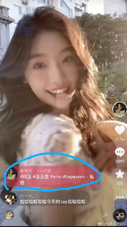 看过易梦玲抖音的都知道,她几乎每条视频都带着其标志性的甜美笑容,然而这样的阳光女孩的最近一条视频的文案中却出现了“玉玉症”的字眼。
